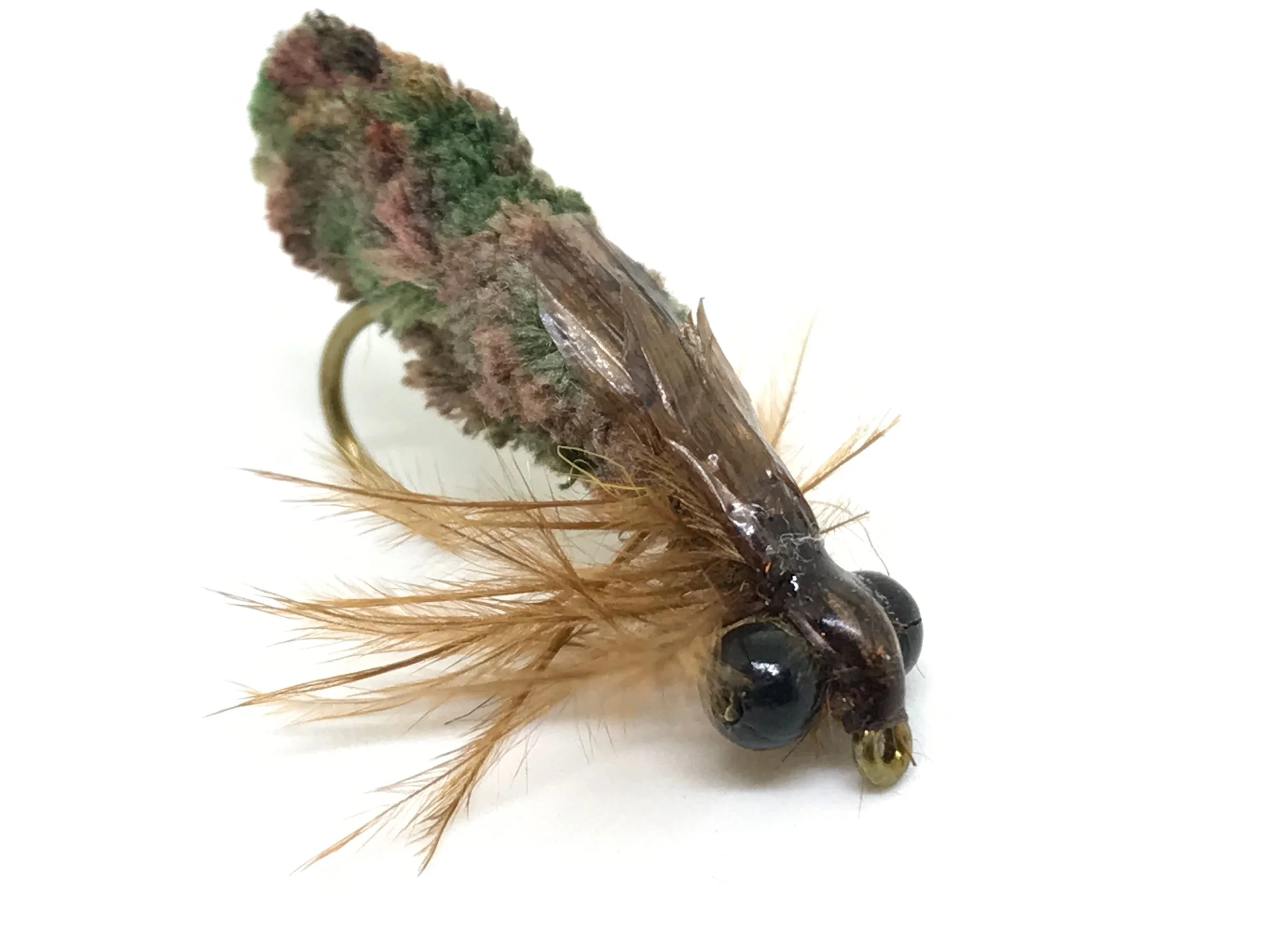 Creating the fly was pretty straightforward. To ensure the fly does not roll over I lash the bead chain to the underside of the hook. That will ensure the fly maintains the proper orientation in the water when retrieved. If you want, you can build the fly so it will ride hook point up, to reduce snags. To accomplish this I lash the bead chain eyes to the top of the hook and add a small keel made of a thick piece of lead wire which is also lashed to the top of the hook. This will keep the hook riding point up which is helpful if your fishing water with a lot of weeds or other debris. Of course, you will have to tie the fly "upside down" to ensure the wingcase ends up on the right side! The “mop” was lashed to the hook shank in two places to ensure it won’t slip or rotate around the hook. Dubbing is used for the thorax, and an emu feather created the legs. For the wing case/emerging wing bud, I used medallion sheeting. Coating the area around the eyes with a little UV curing epoxy will create a bomb proof fly that will stand up to a lot of fish.