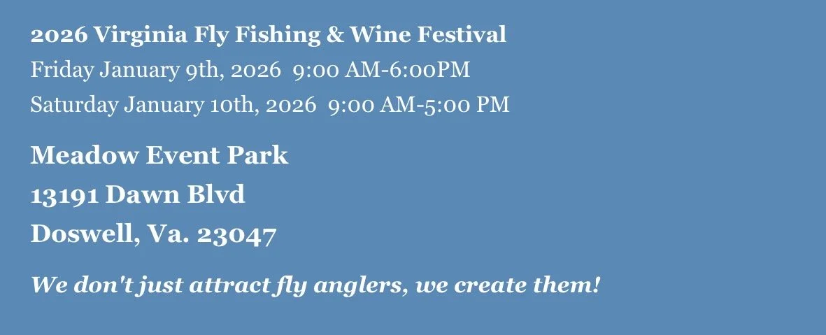My first show of the year is also one of my favorites. It is the Virginia Fly Fishing and Wine Festival in Doswell, Virginia. This show combines fly fishing with wine, beer and spirit tastings. What could be better than that! One of the reasons this show is one of my favorites is that the attendees always seem to be in a great mood (it may have something to do with all of the wine, beers and spirits being sampled!). As we move through the winter months I will be in a different part of the country almost every weekend attending various fly fishing and fly tying shows. You can check out the Calendar of Events page to see the other shows I will be tying at.