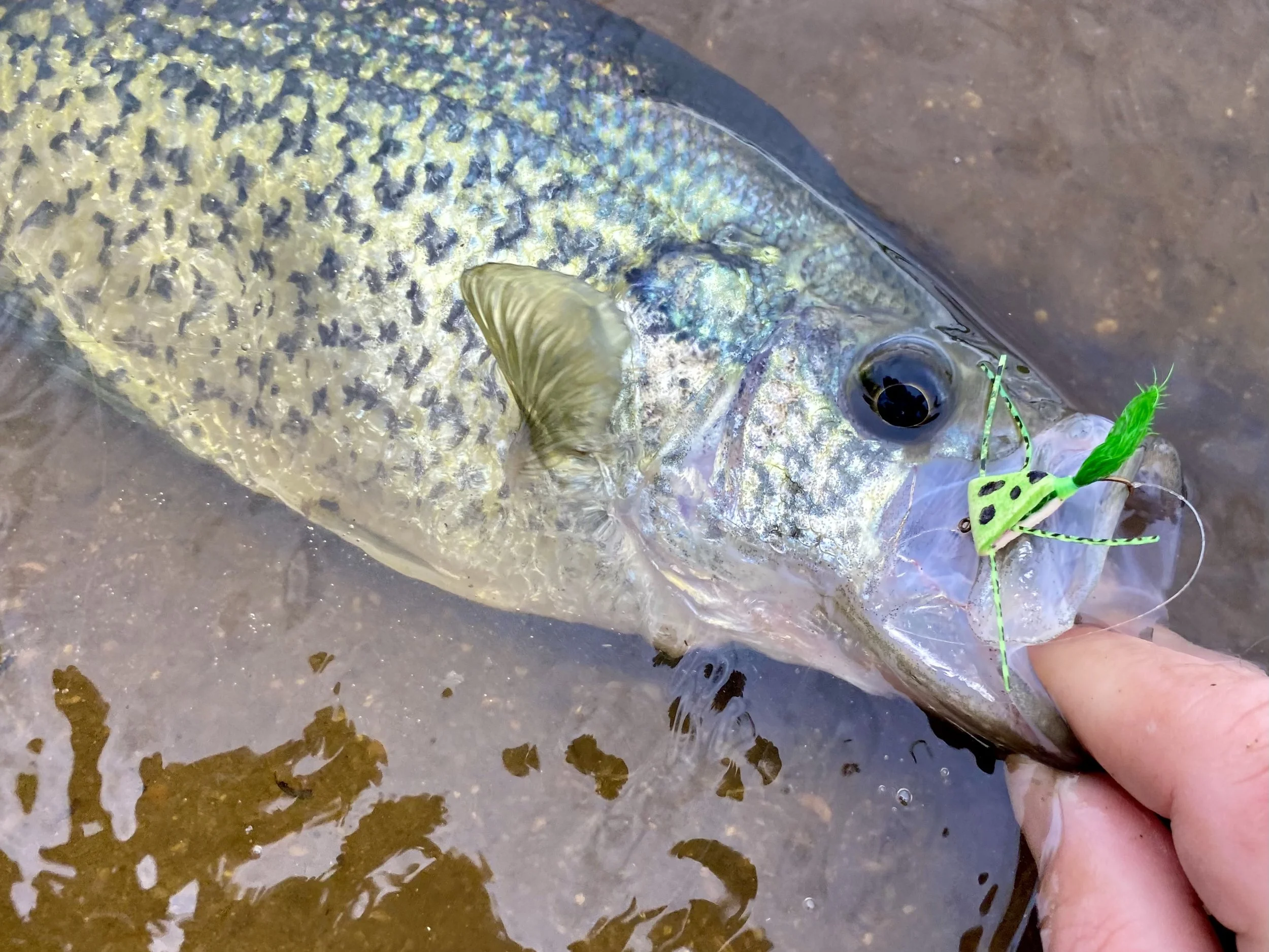 As the water warms, small streamers and big wet flies retrieved with small strips rack up big numbers of fish. By the time the Dogwoods bloom, crappies begin to look to the surface for their next meal. Although crappies are not known for surface feeding, there is a brief window each spring when I catch them on topwater patterns. I look forward to catching big crappies on the surface every spring!