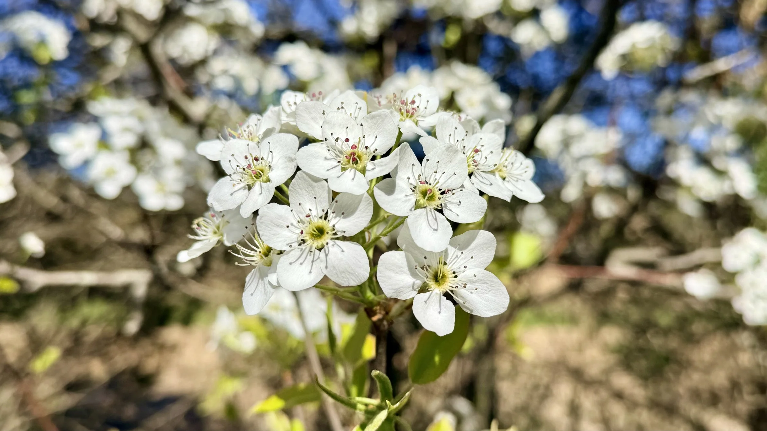 A cluster of flowers on a Bradford Pear tree.